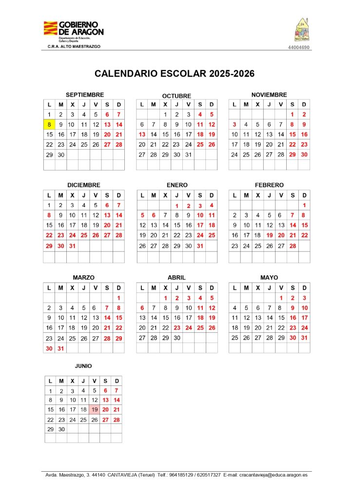 CALENDARIO ESCOLAR – CURSO 2025/2026